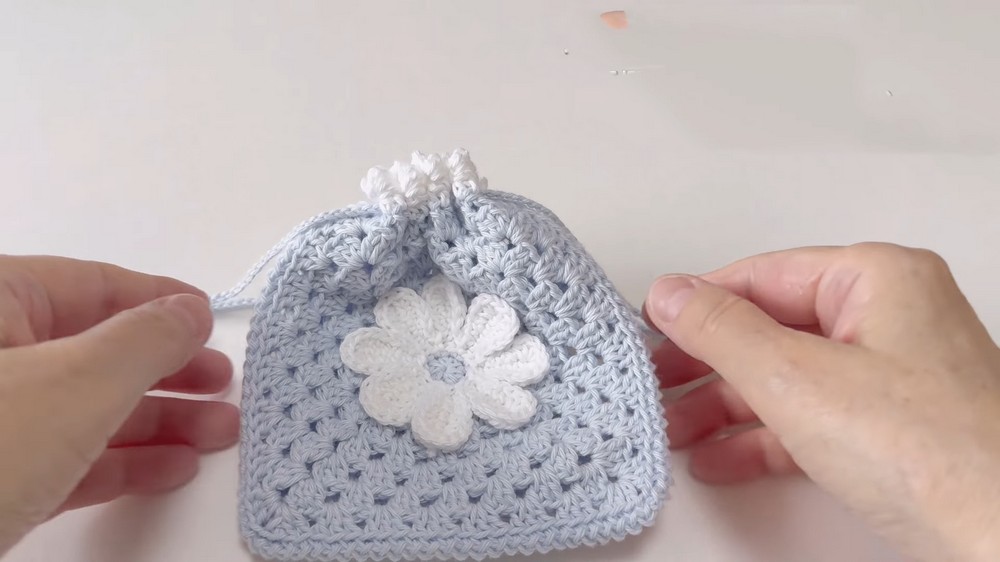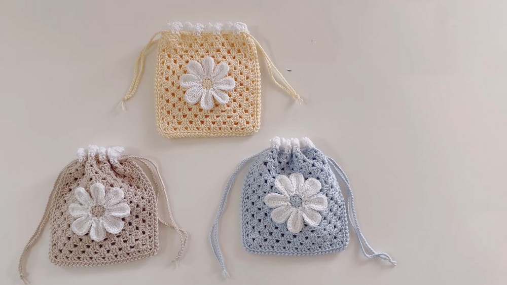 Crochet 3d Daisy Motif Mini Drawstring Pouch 2 Save