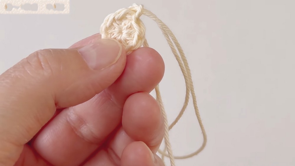 2. Pull the tail of the magic ring to tighten the loop and close the circle.