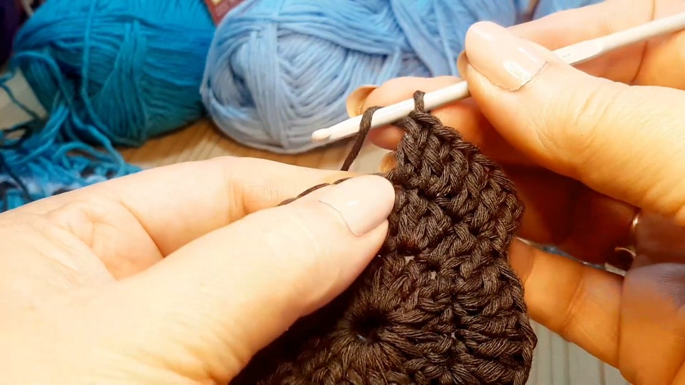 - Single crochet in the first stitch, chain 1.