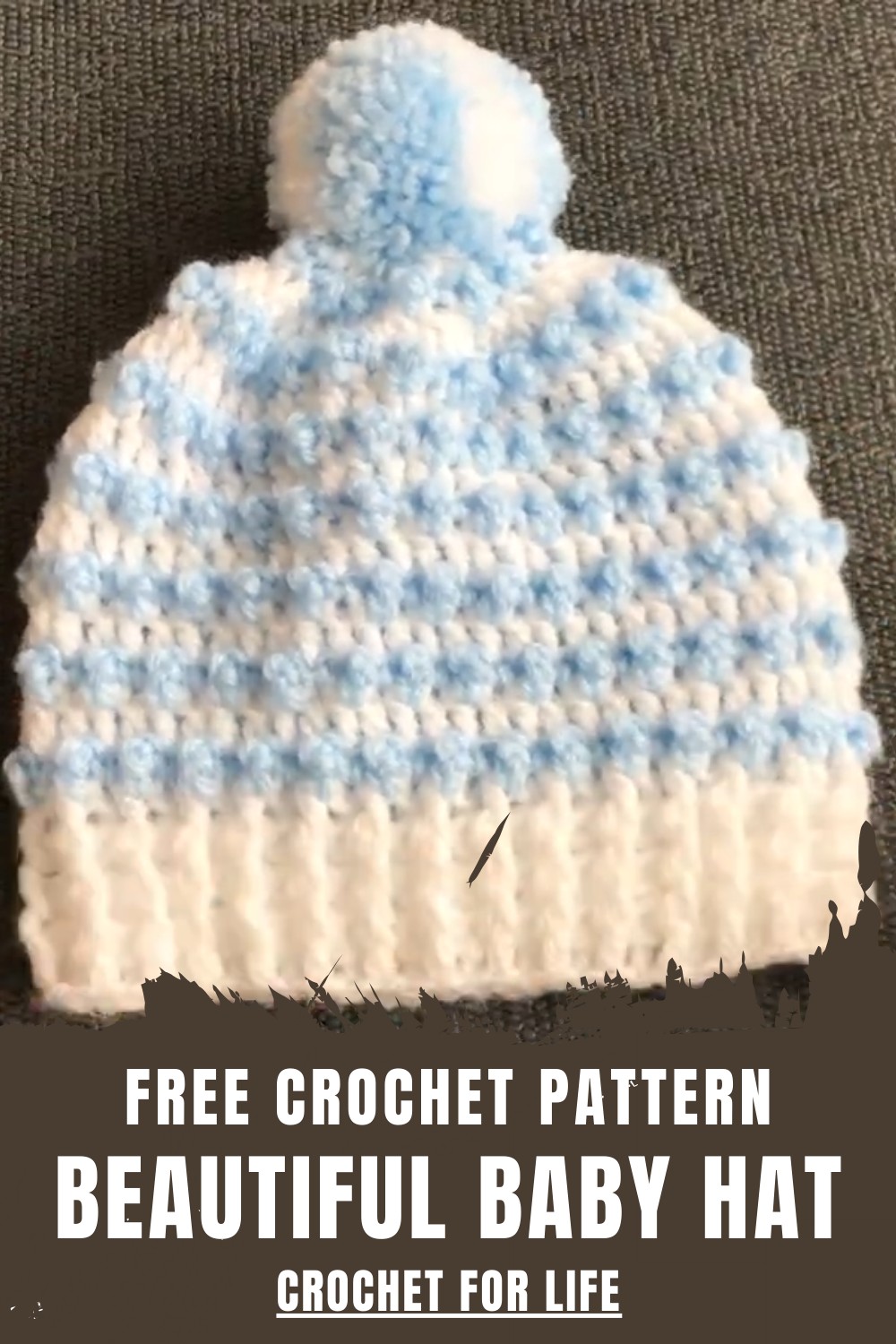 This baby hat is simple to make with a repeated two-row pattern, making it ideal for beginners wanting to learn post stitches and textured crochet techniques.