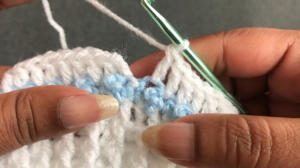 - Hold the main color (White) behind the work to prevent tangling.