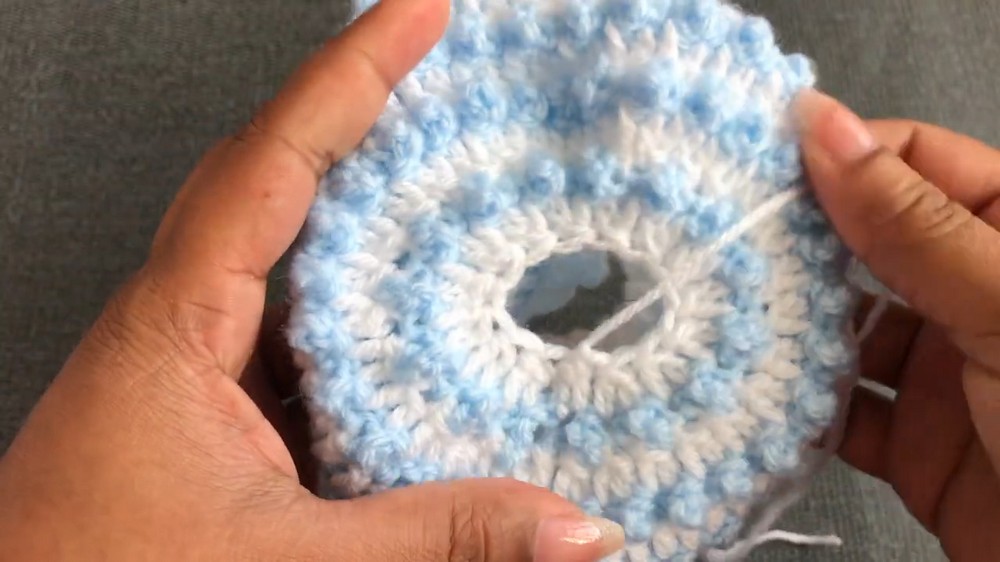 - Pull the yarn tight to secure the crown.