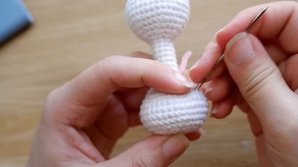 (Complete the rest of body shaping by following increase and decrease rounds described in the video when needed, stuffing gradually for rounded shape.)
