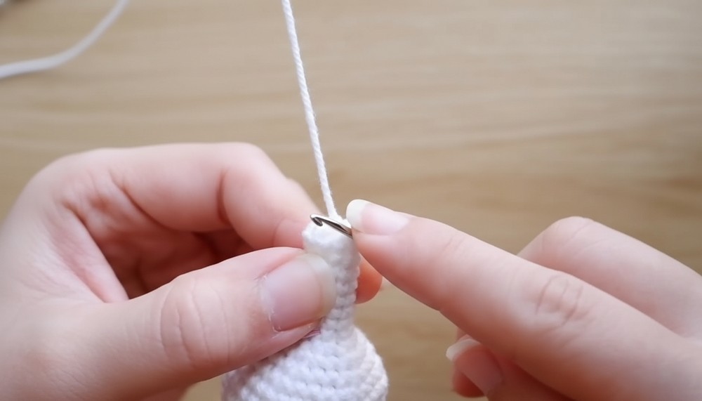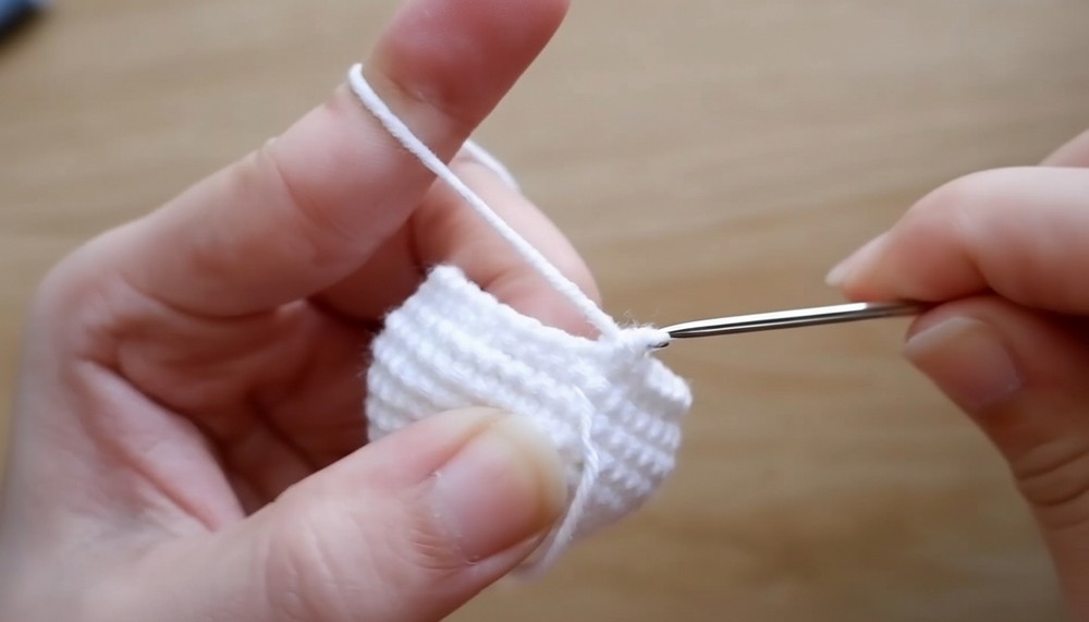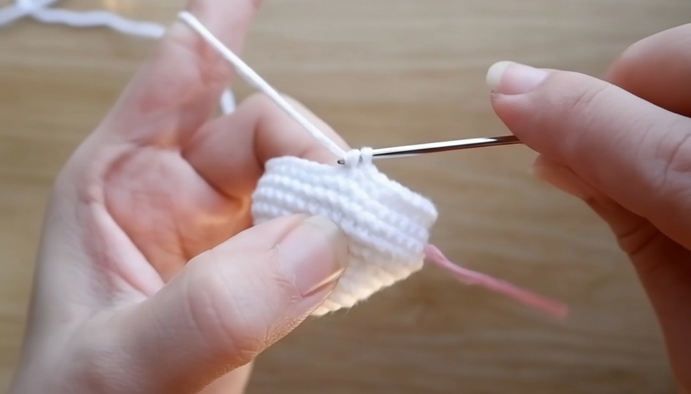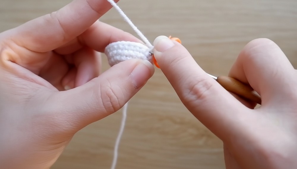 • Follow the video’s stitch counts to increase to 15 sts, then crochet 3 rounds with 15 sc stitches without increases.