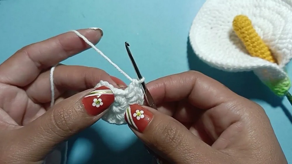 - Always align the petal tip (marked by 3 dc) centered with stem for authentic calyx shape.