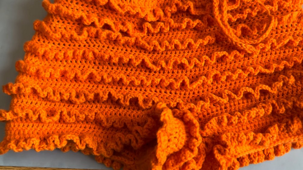 - To vary ruffle texture: alternate rows with two dc and three dc per stitch as desired.