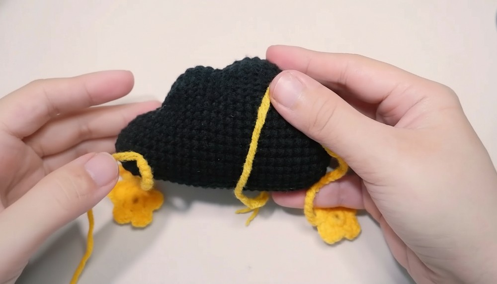 • Create legs using magic rings and single crochets.