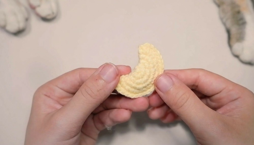 • Shape crescent carefully during crochet.