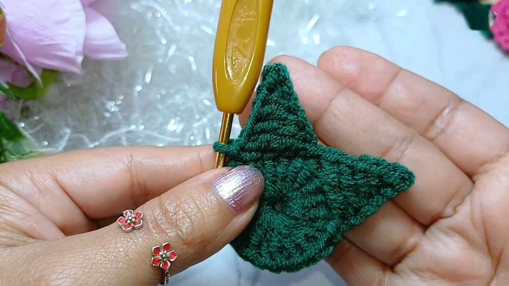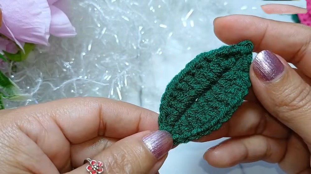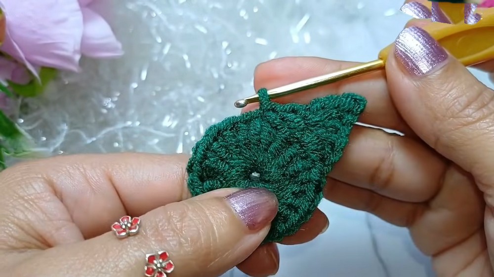 - Ch 1 and sl st back into the base of the chain to form a point on the tip of the leaf.