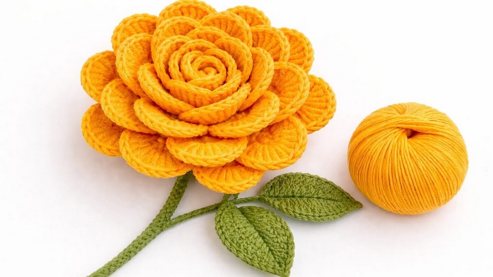 - Rose Petals (Main Color): Lightweight acrylic or cotton yarn in mango (yellow/orange) or the color of your choice.