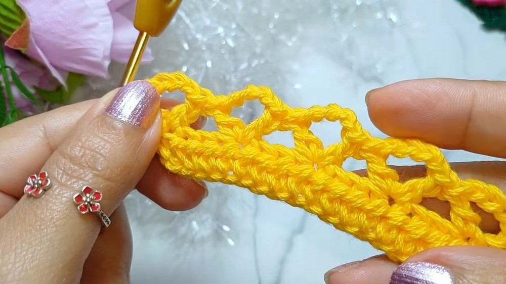 - Repeat this sequence across the entire row to form a total of 24 petal spaces.