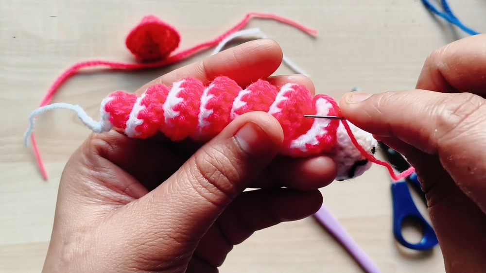 - Color 2: Pink yarn (for the body and hat).
