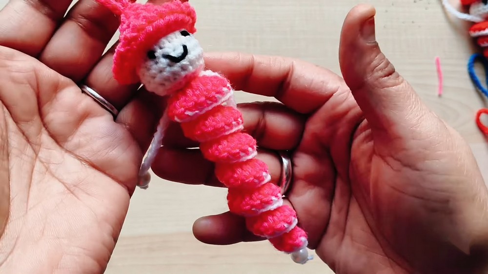 Your spiral hanging doll is now complete! This versatile, playful design works as an ornament for your home, car, or even as a cheerful Christmas decoration. You can experiment with colors and accessories to suit any season or occasion.