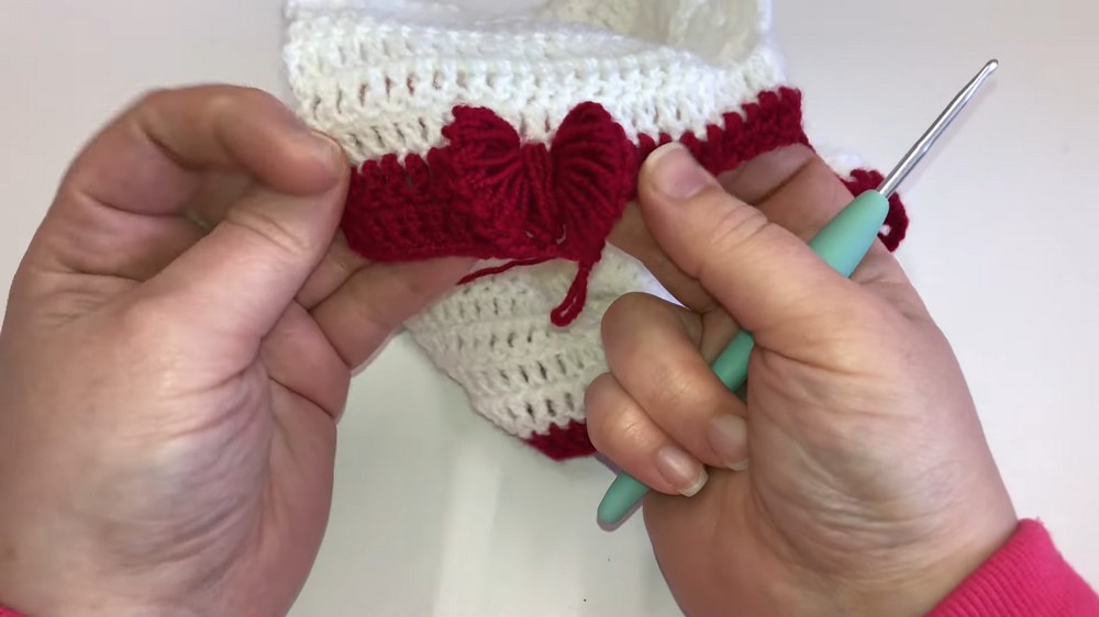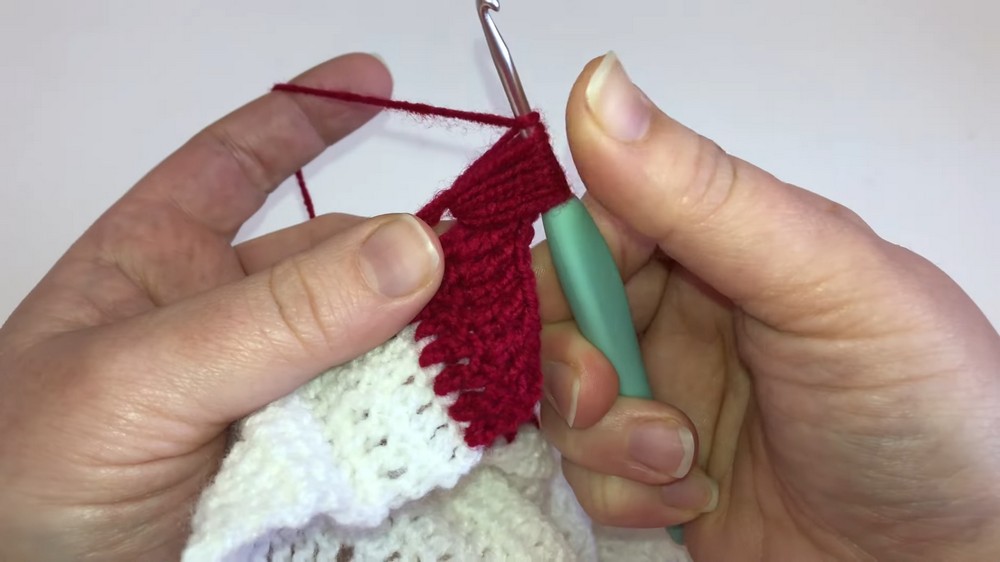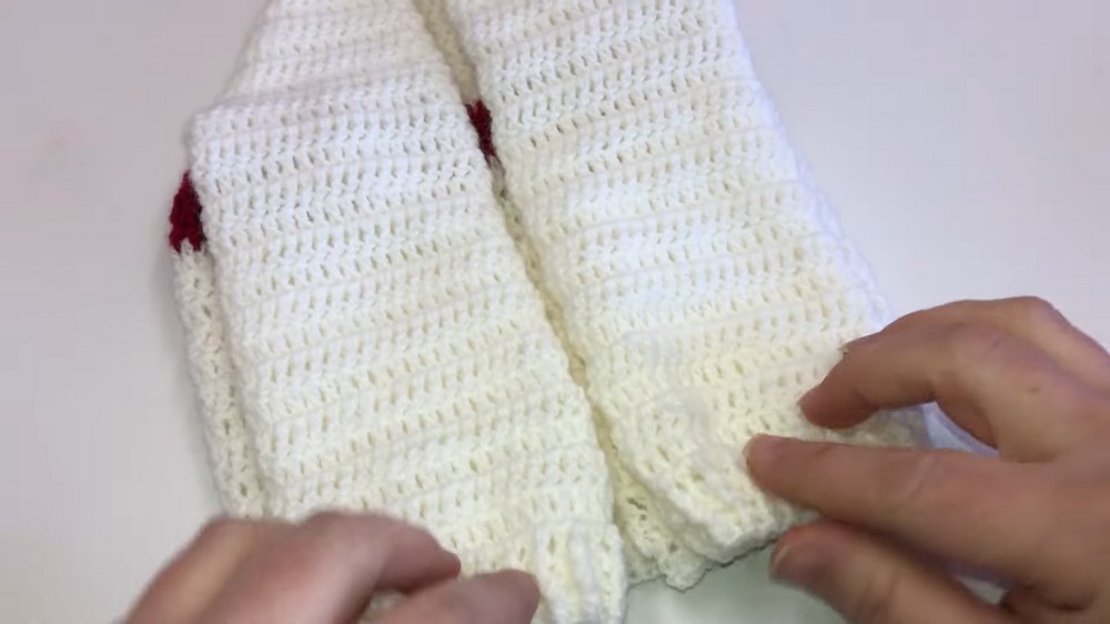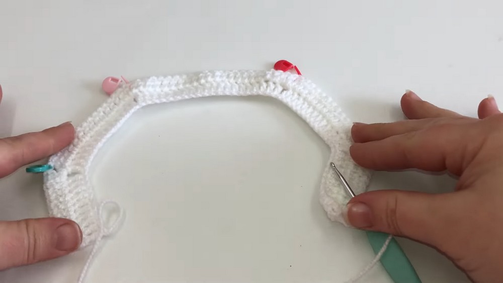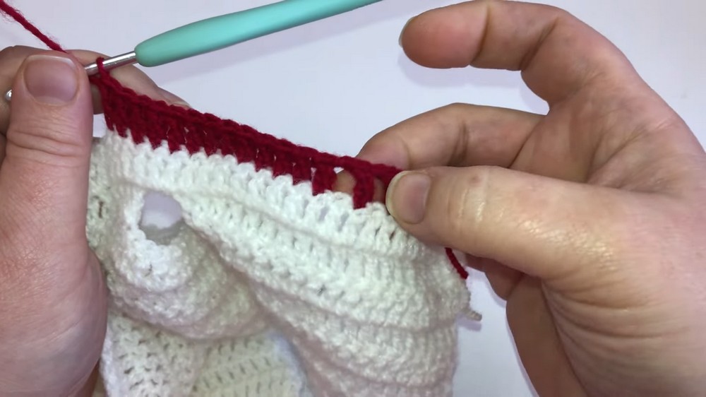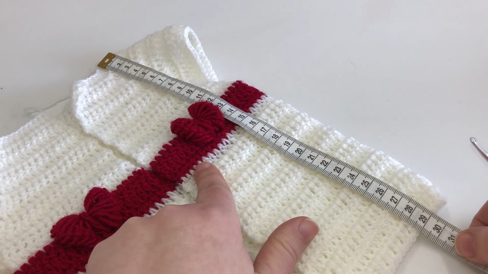 - Rows 15–28: Work dc rows, creating a straight body section until the piece measures 29 cm.