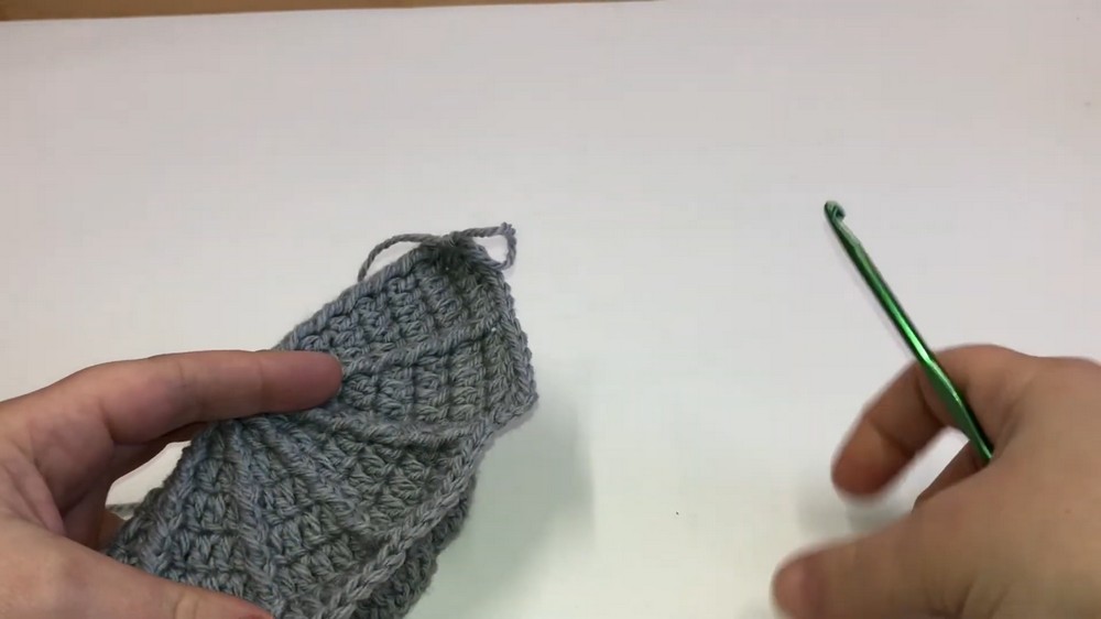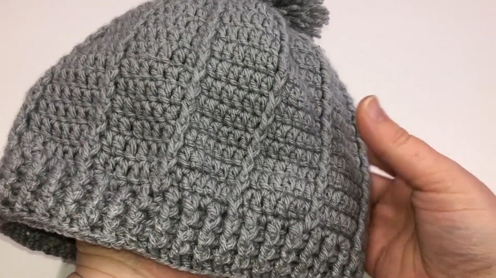 - Repeat Round 9 (double crochet with front post stitches spaced evenly) until the beanie reaches 19 cm in height.