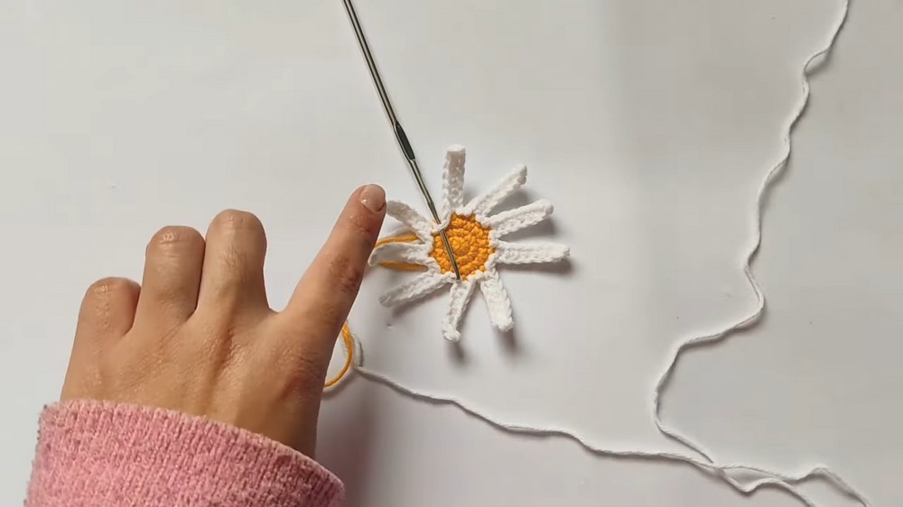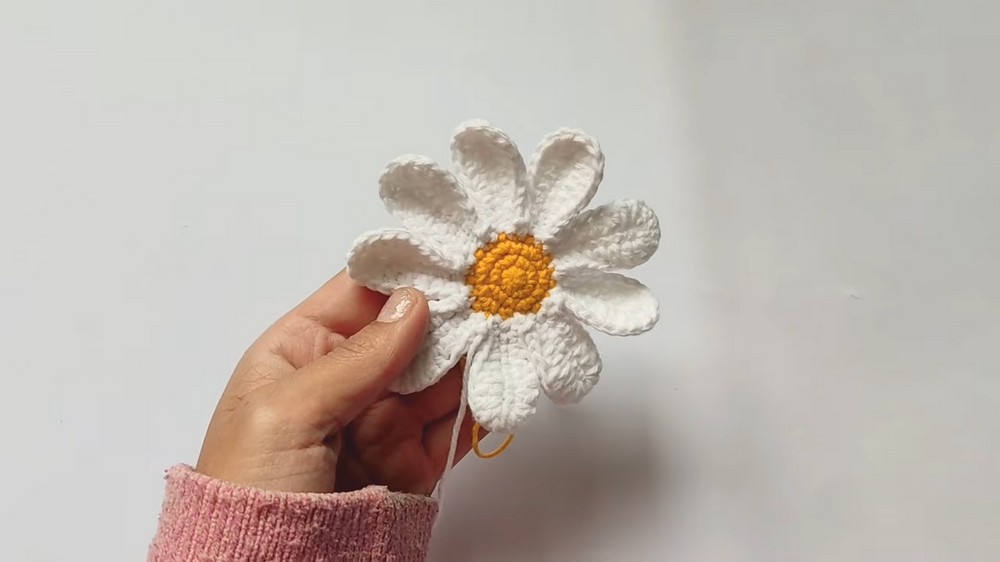 • Yarn Option: Although thin yarn gives a delicate finish, switching to thicker yarn creates larger daisies perfect for baby blankets or wall decorations.