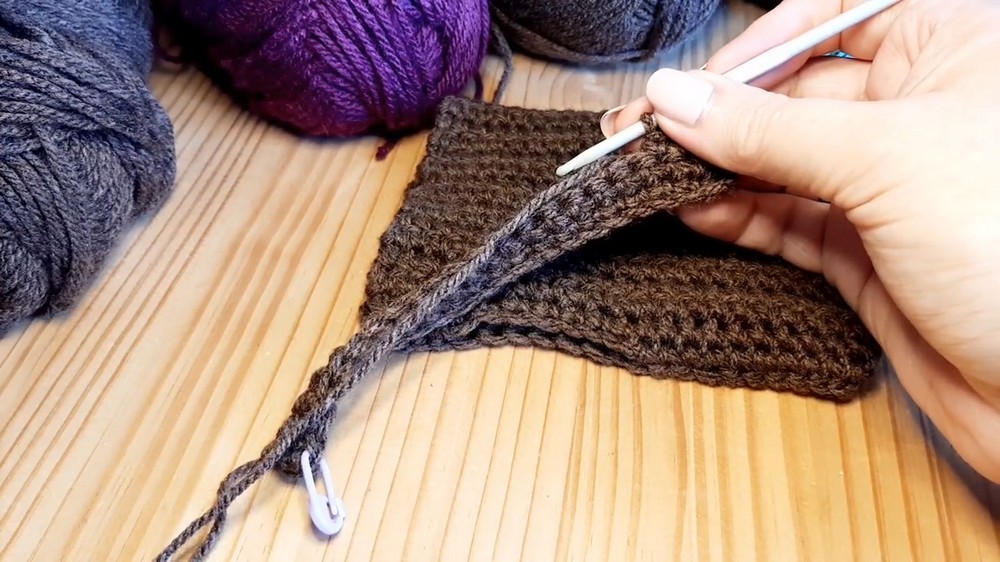 4. For the next 7 stitches on one side only, single crochet (this forms shaping around the thumb).