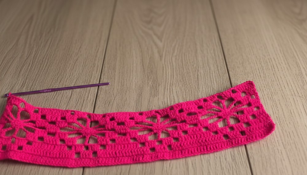 - Chain a length multiple of 25 + 3 (base chains) to accommodate flower repeats.