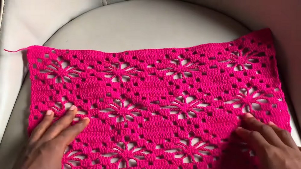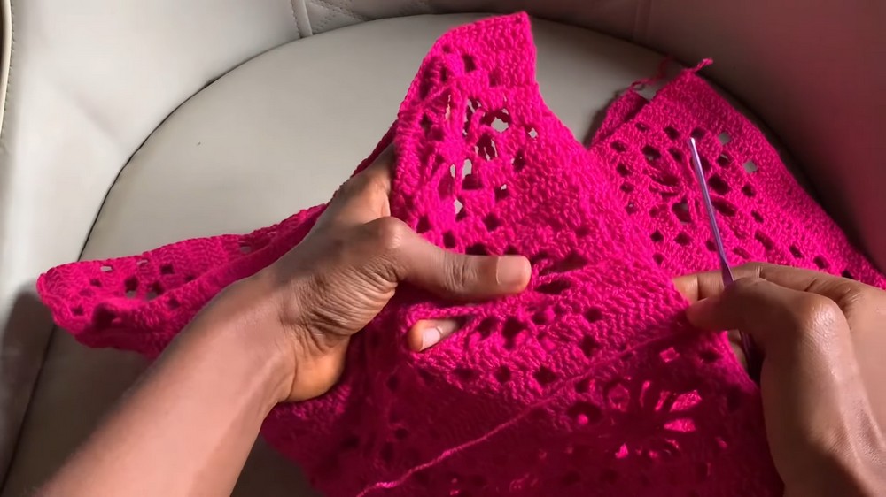 - Leave openings for armholes and neck: armhole can be adjusted by skipping 2 or 3 flowers on each side during joining according to comfort preference.