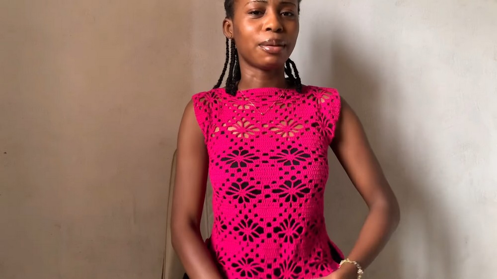 This floral crochet tank top pattern blends intricate floral stitches with accessible shaping and joining techniques. With practice, you’ll create a beautiful top adaptable for many personal style choices and sizes.