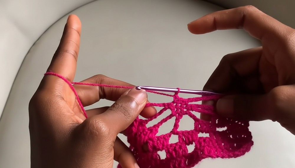 - Repeat this pattern with chain 4 spaces and triple crochets for texture accent.