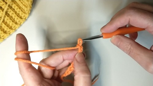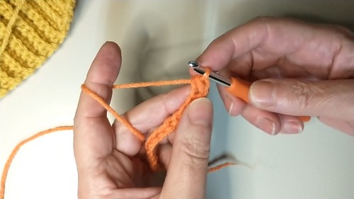 Chain 15 stitches and work single crochets, alternating in the back loops, to give the ribbing its stretchy texture.
