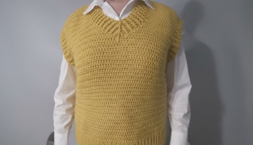 This tutorial walks you through crocheting a handmade vest, using clear instructions and easy-to-follow techniques. This row-by-row pattern is both fashionable and timeless, designed to suit all body shapes. The vest features a textured lemon peel stitch combined with ribbing for a clean and professional finish.
