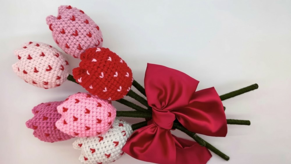 Brighten Crochet Tulips with Hearts Pattern for Table Accents