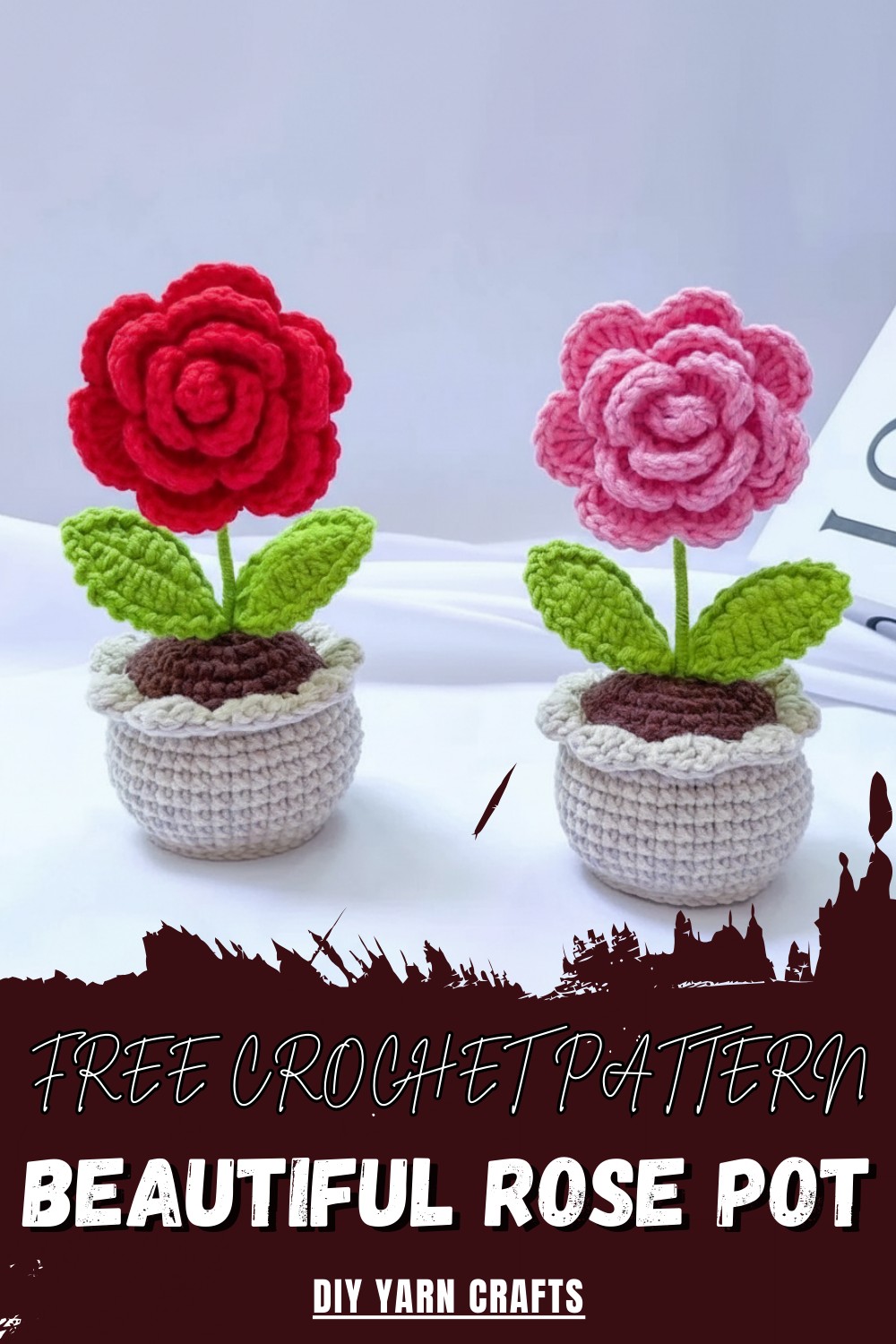 - Yarn: 5-ply cotton yarn (or similar, for rose, leaves, soil, and pot)