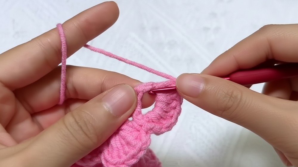 - At end: sl st in last st, ch 1, fasten off, leave a long tail.