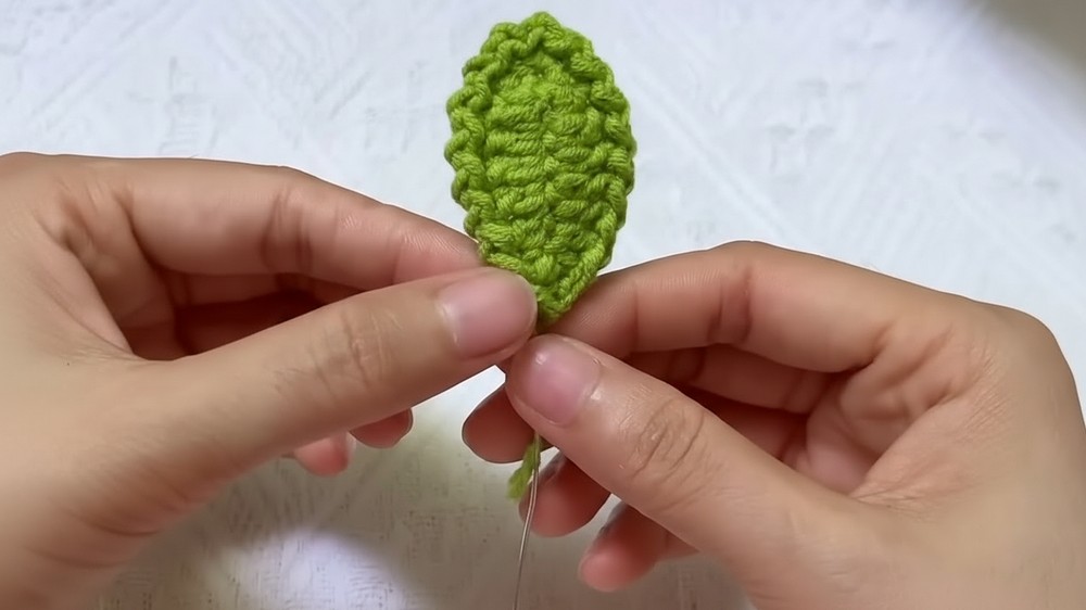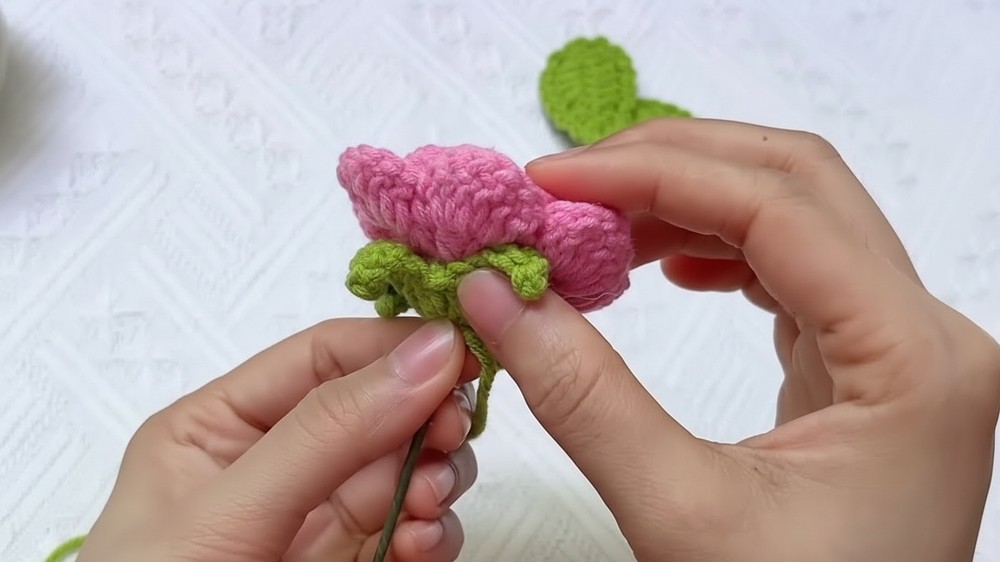 - Wrap sepal yarn tail around stem for 5–6 cm for realism.