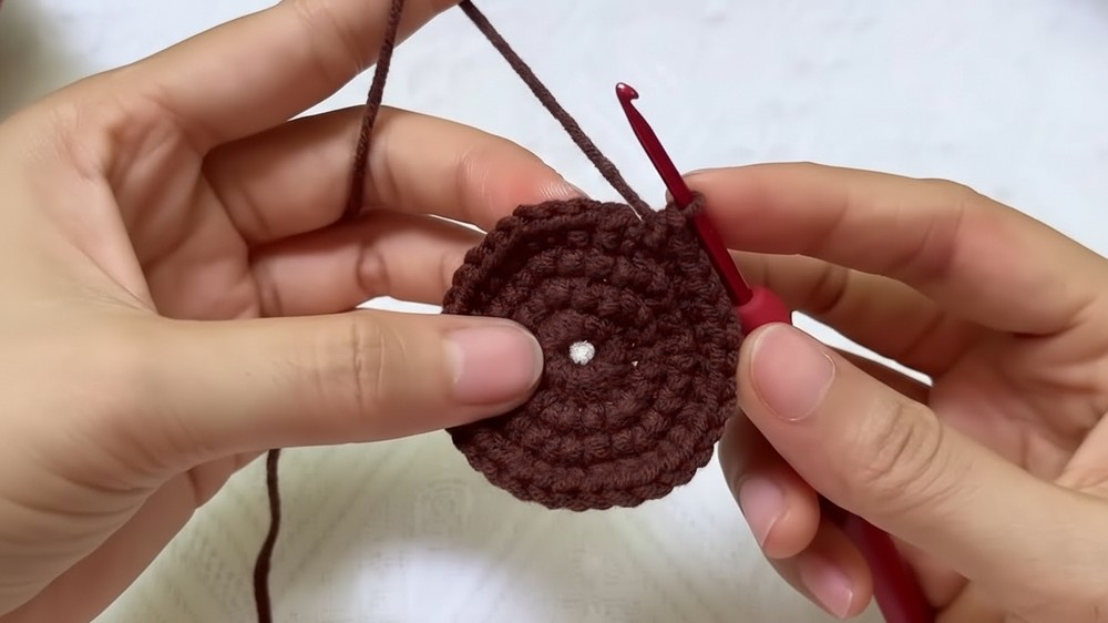 - Rnd 3: Ch 1, (sc in next st, 2 sc in next st) around (1 sc, 1 inc repeat — 21 sc total). Sl st to join.