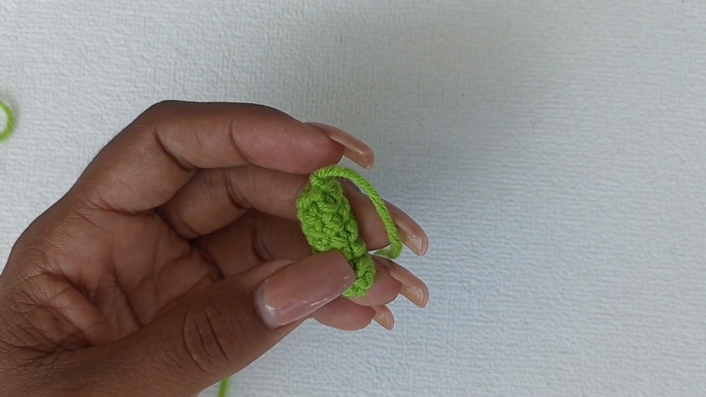 • Sc in each st around (5 sc per round) for 7 rounds (or to length needed for your tulip and keychain).