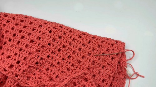 - Use yarn and tapestry needle to sew shoulder seams securely.