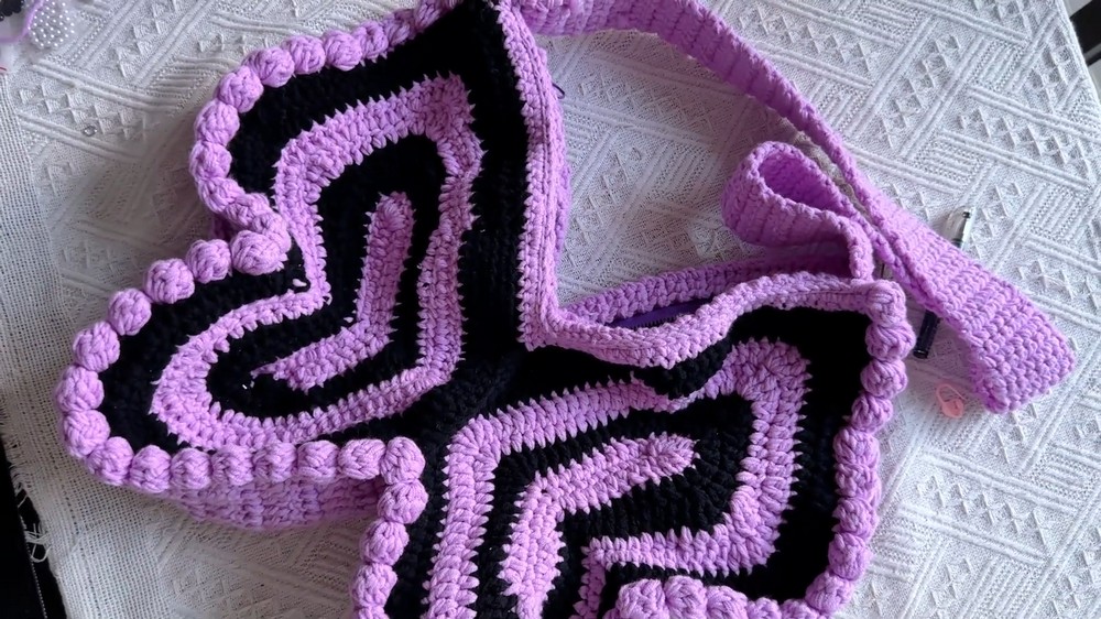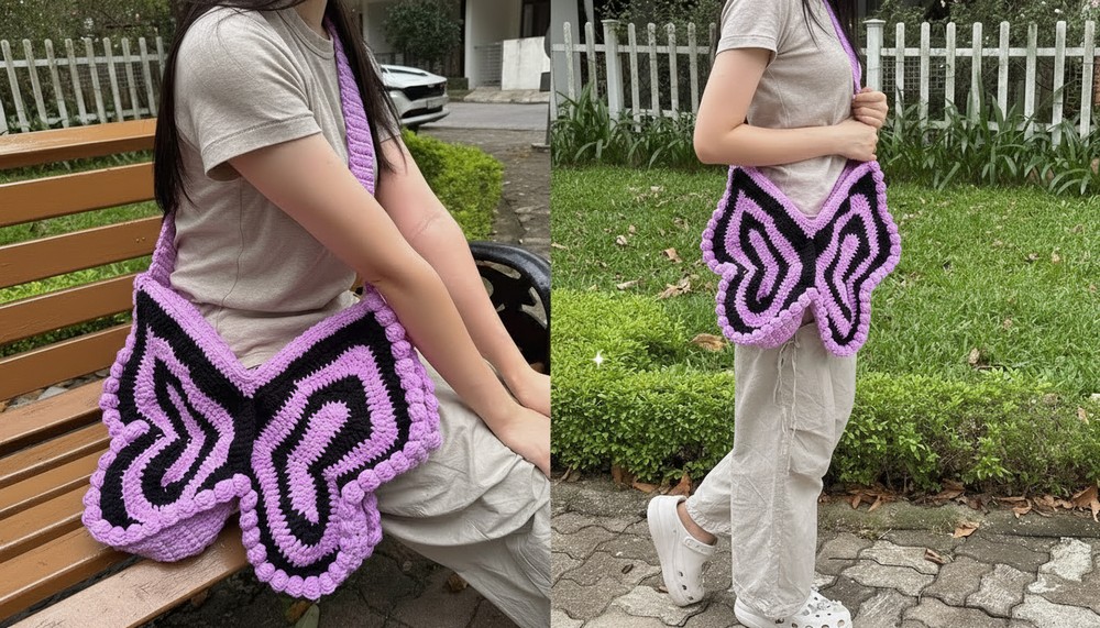 With this detailed crochet pattern, you’ll create a beautiful, sturdy butterfly bag full of personality and style. Its unique shape, fun pom-pom edging, and practical features like an adjustable strap and zipper make it perfect for many occasions.