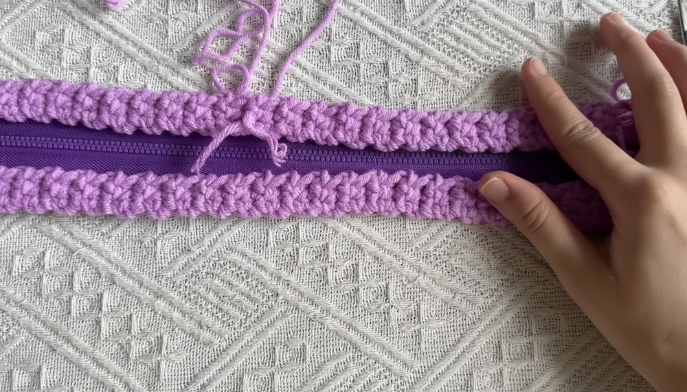 - Work popcorn stitches around the edge for a playful border.