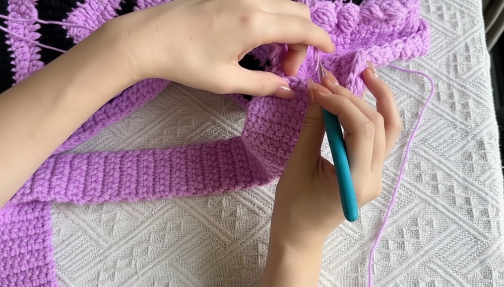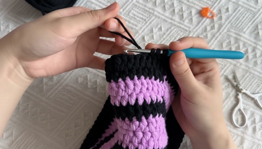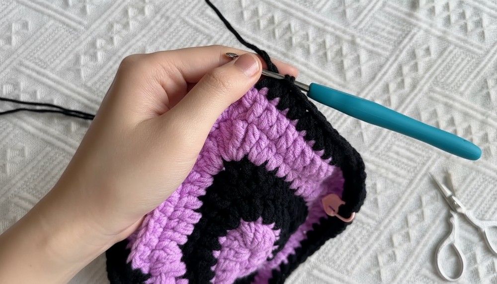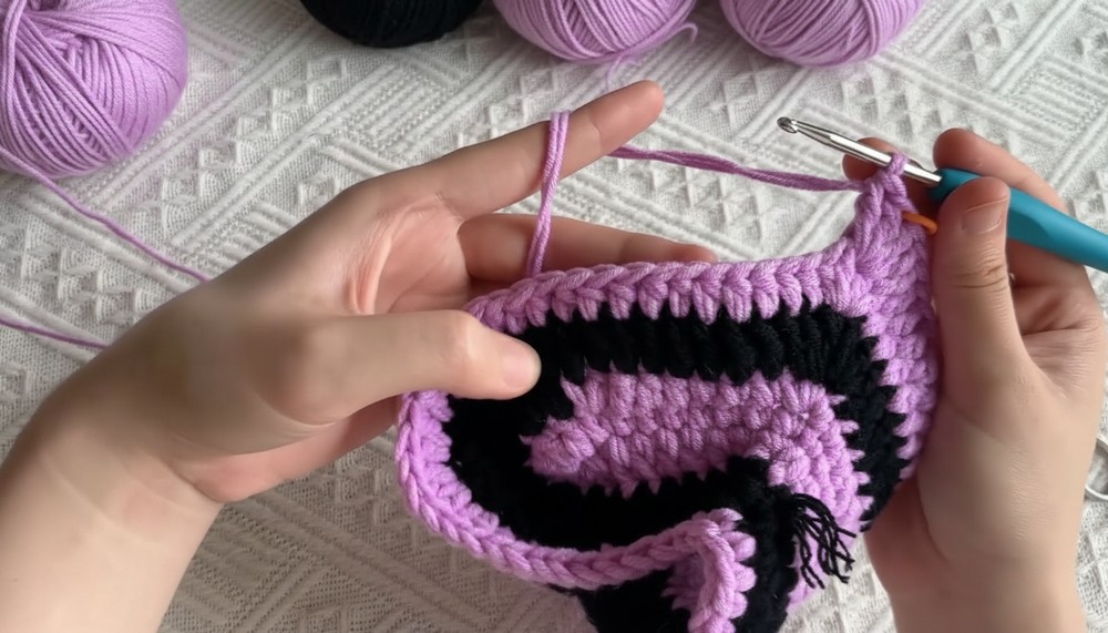 - When the purple yarn runs short, switch to black yarn seamlessly.