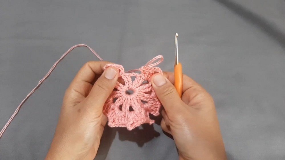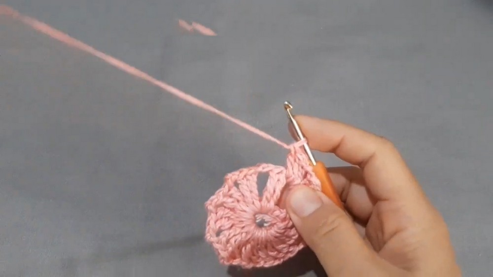 3. Fill 3rd stitch with 9 double crochets (3 inside + 6 additional).