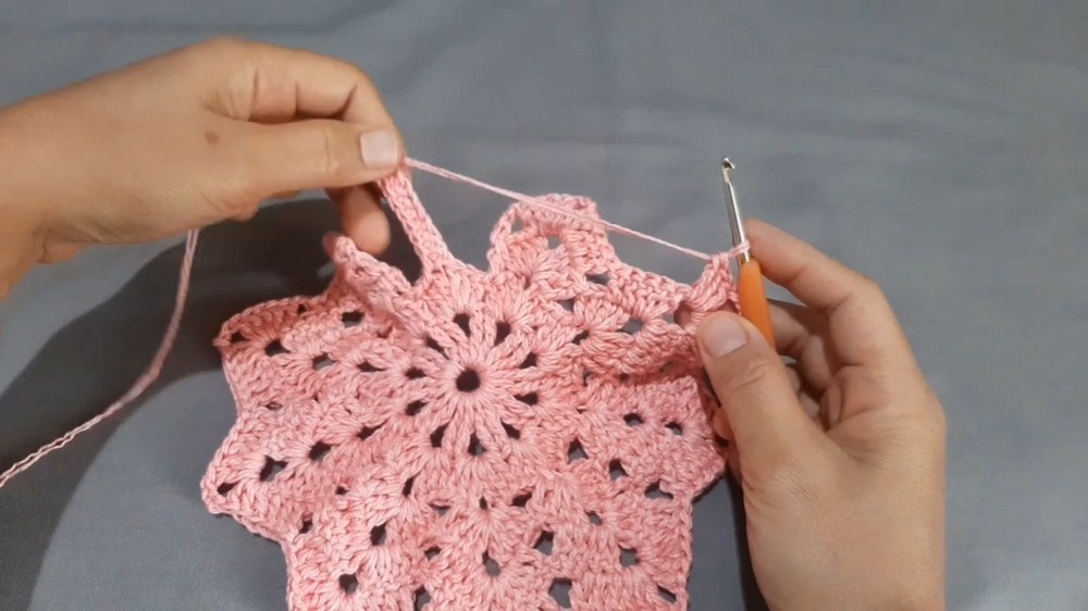 5. Continue similarly with repeating sets, finish with slip stitch.
