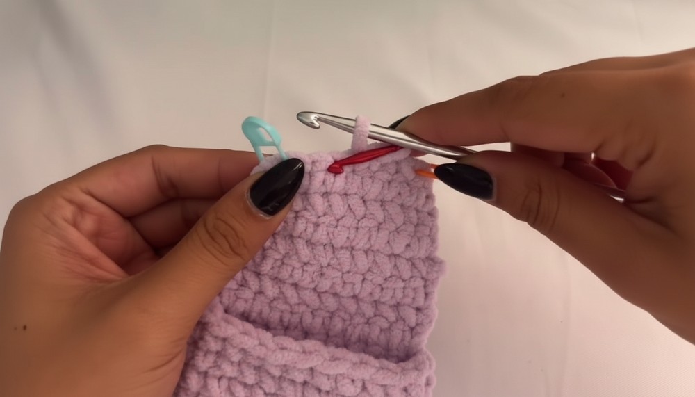 • Add a stitch marker at the end to mark your rows.