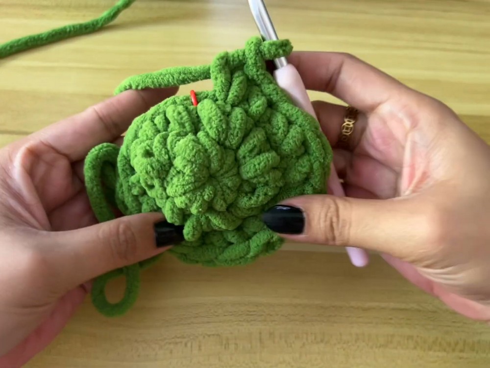 - Make a magic circle with green yarn.