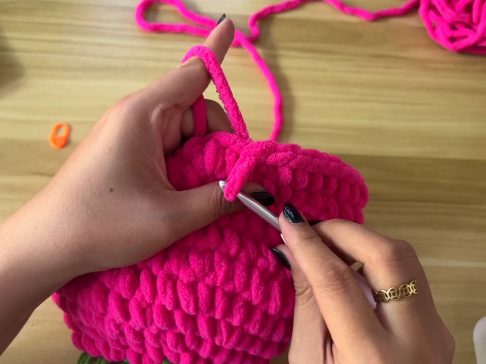 Step 5: Change to Pink Yarn for Tulip Bulb
