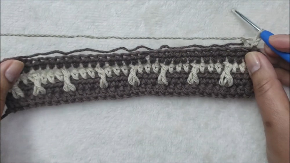- Carry the unused color by crocheting over it in rows worked with the alternate color.