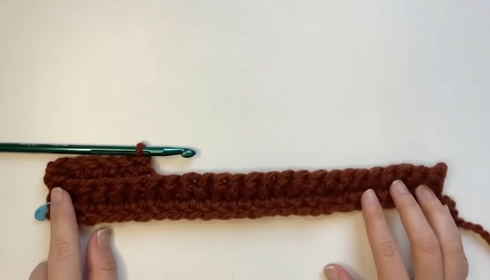 - (Optional) Use a stitch marker on the first sc to help identify the end of row for seaming later.