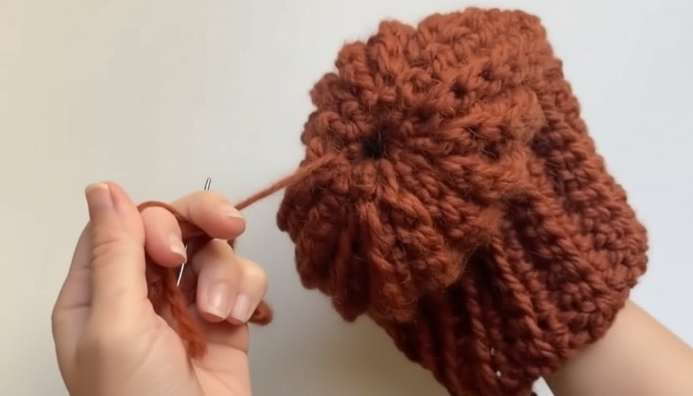 - Weave the yarn tail securely inside the hat to finish.