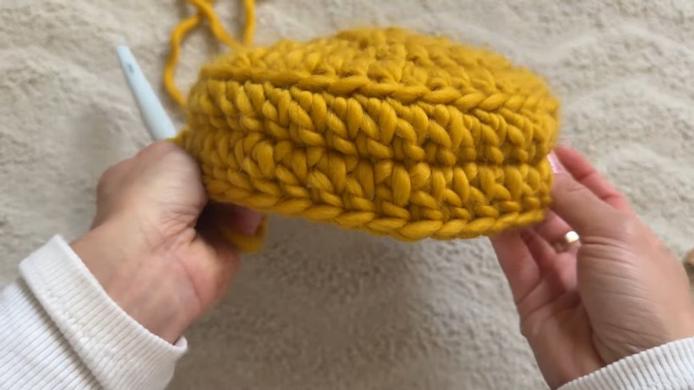 For the top section, increase your stitch count in each subsequent round—doubling to 20, then increasing every second stitch for 30, and every third for 40—until the flat circle matches the crown of your head.