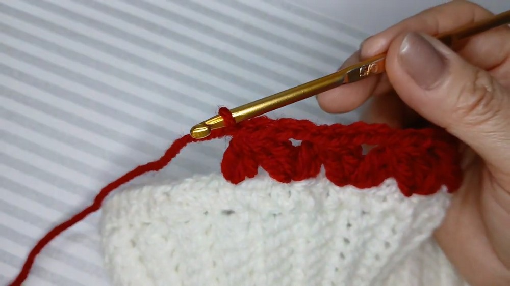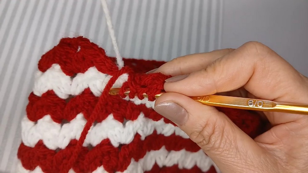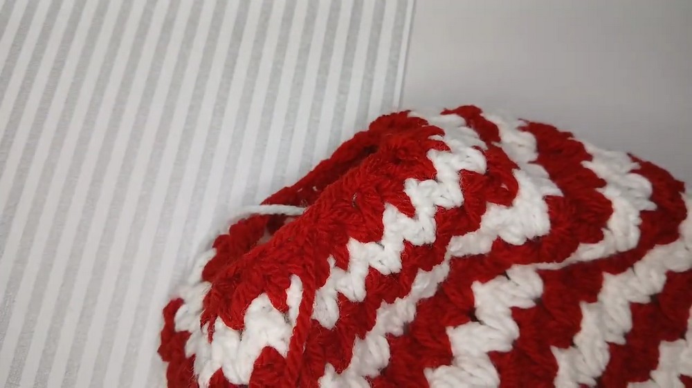 - Change yarn colors every other round (e.g., red and white) by joining new yarn color on the final yarn over of the last stitch.