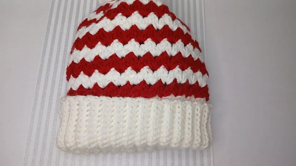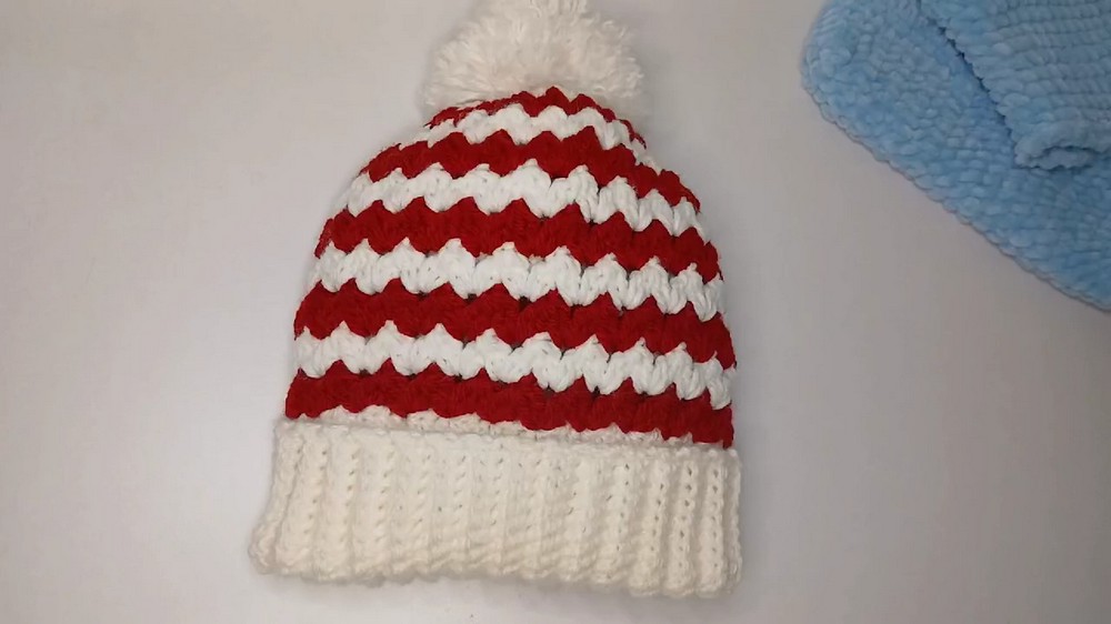 - Make a coordinating pom-pom using leftover yarn and attach it to the top center of the hat securely.