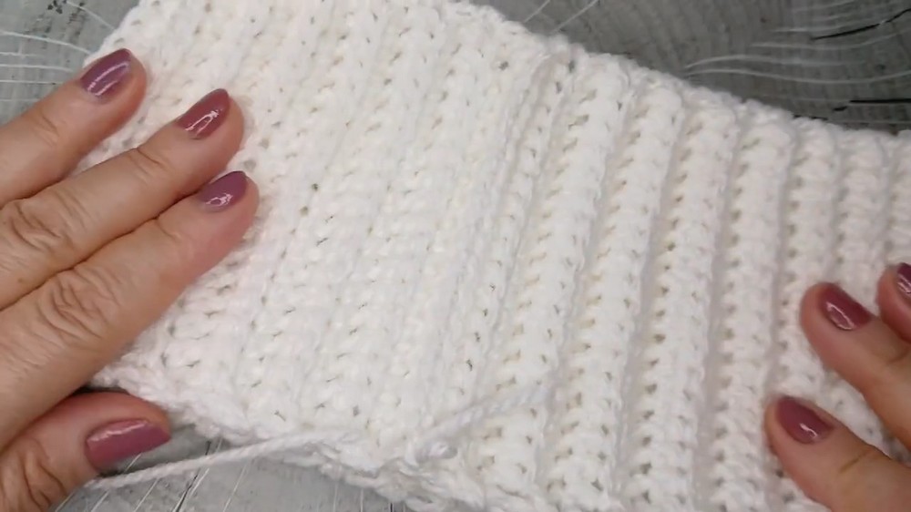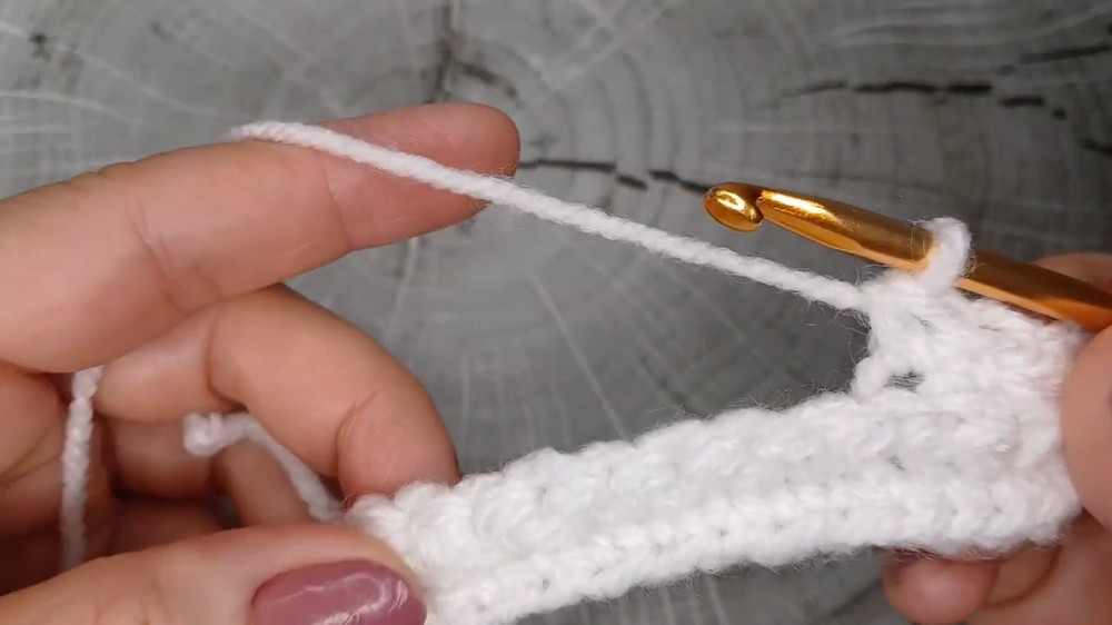 - Chain 1, turn. Repeat single crochet in back loop only across.