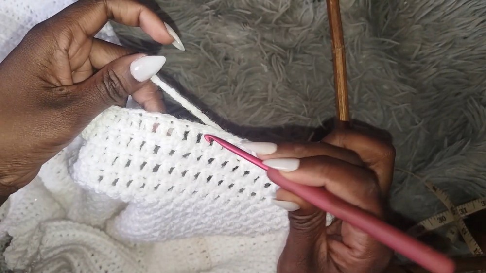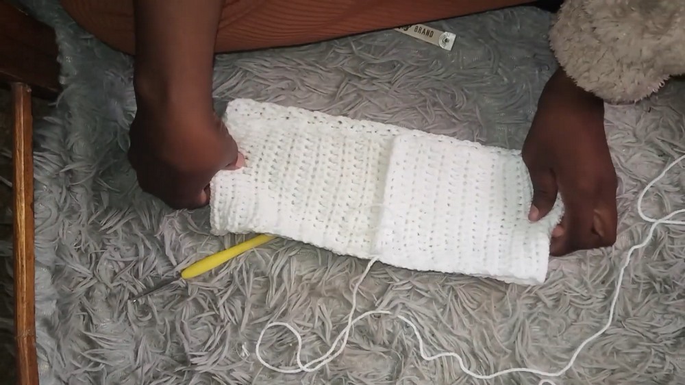 • Work single crochet evenly around the bottom edge to create a clean hemline.